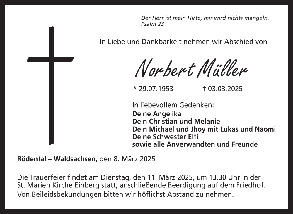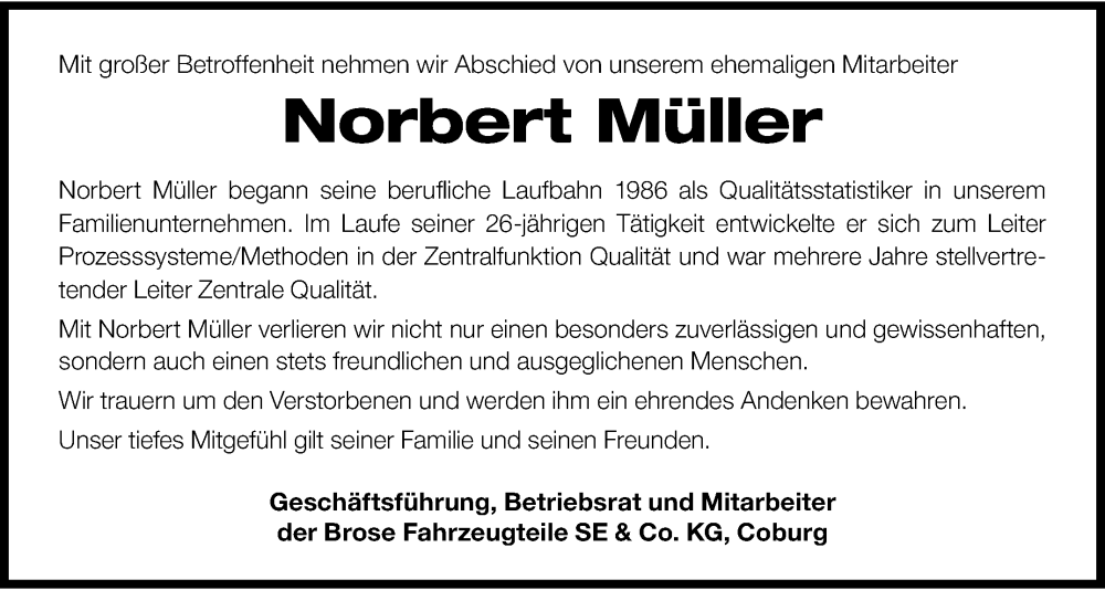 Hier finden Sie alle Traueranzeigen aus der Zeitung, die bisher für Norbert Müller erschienen sind. Weitere Traueranzeigen, die in der Zeitung erscheinen, werden hier ebenfalls aufgelistet