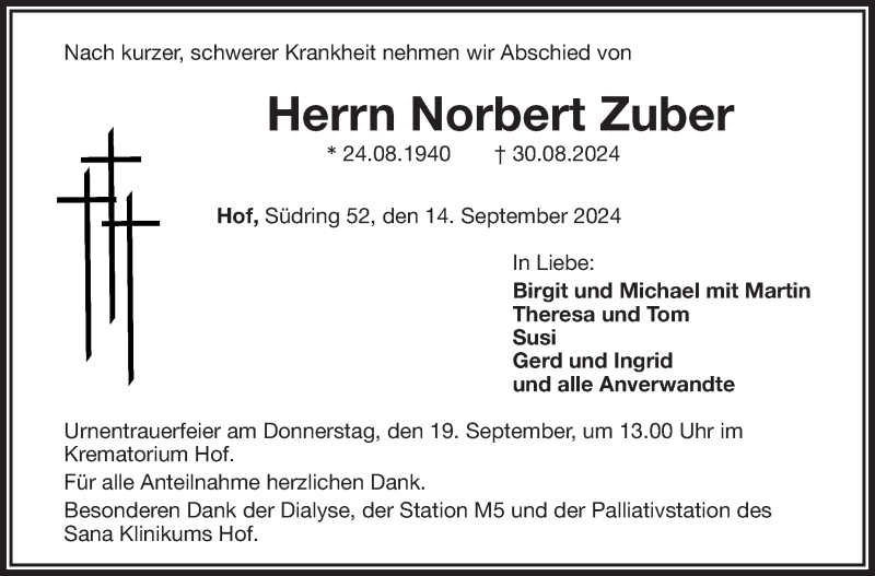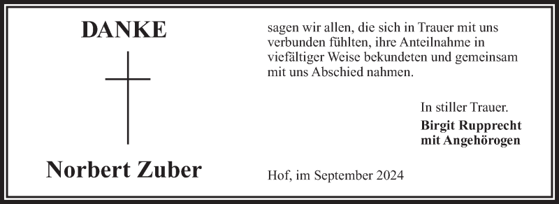 Hier finden Sie alle Traueranzeigen aus der Zeitung, die bisher für Norbert Zuber erschienen sind. Weitere Traueranzeigen, die in der Zeitung erscheinen, werden hier ebenfalls aufgelistet