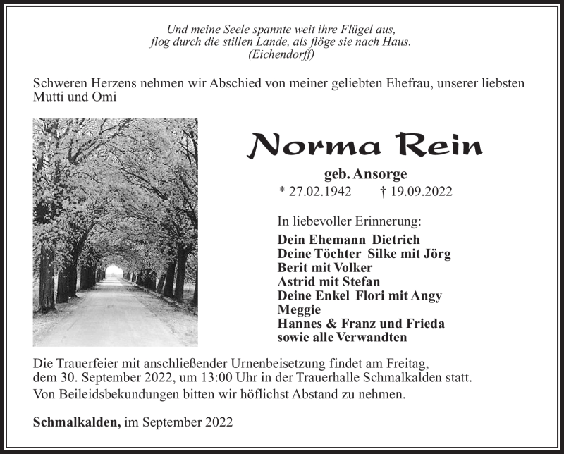 Hier finden Sie alle Traueranzeigen aus der Zeitung, die bisher für Norma Rein erschienen sind. Weitere Traueranzeigen, die in der Zeitung erscheinen, werden hier ebenfalls aufgelistet