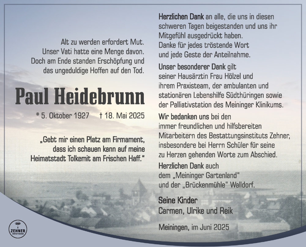 Hier finden Sie alle Traueranzeigen aus der Zeitung, die bisher für Paul Heidebrunn erschienen sind. Weitere Traueranzeigen, die in der Zeitung erscheinen, werden hier ebenfalls aufgelistet