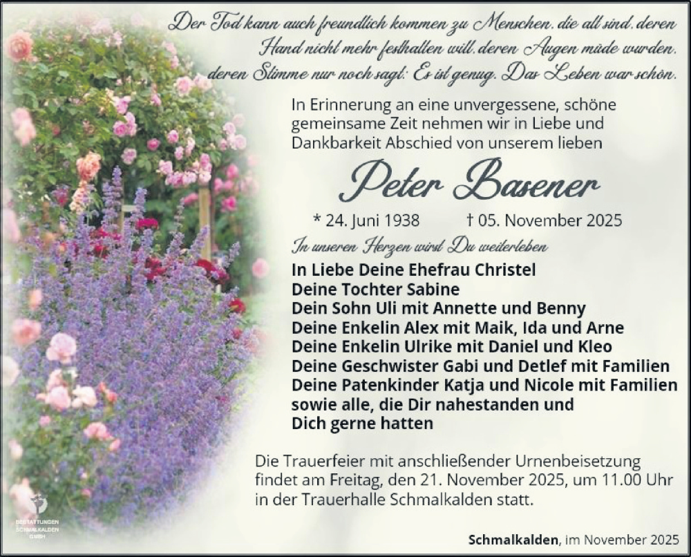 Hier finden Sie alle Traueranzeigen aus der Zeitung, die bisher für Peter Basener erschienen sind. Weitere Traueranzeigen, die in der Zeitung erscheinen, werden hier ebenfalls aufgelistet