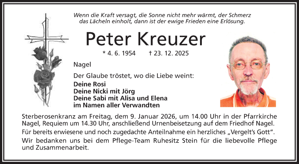 Hier finden Sie alle Traueranzeigen aus der Zeitung, die bisher für Peter Kreuzer erschienen sind. Weitere Traueranzeigen, die in der Zeitung erscheinen, werden hier ebenfalls aufgelistet