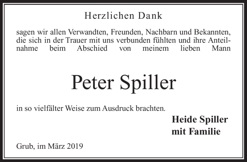 Hier finden Sie alle Traueranzeigen aus der Zeitung, die bisher für Peter Spiller erschienen sind. Weitere Traueranzeigen, die in der Zeitung erscheinen, werden hier ebenfalls aufgelistet