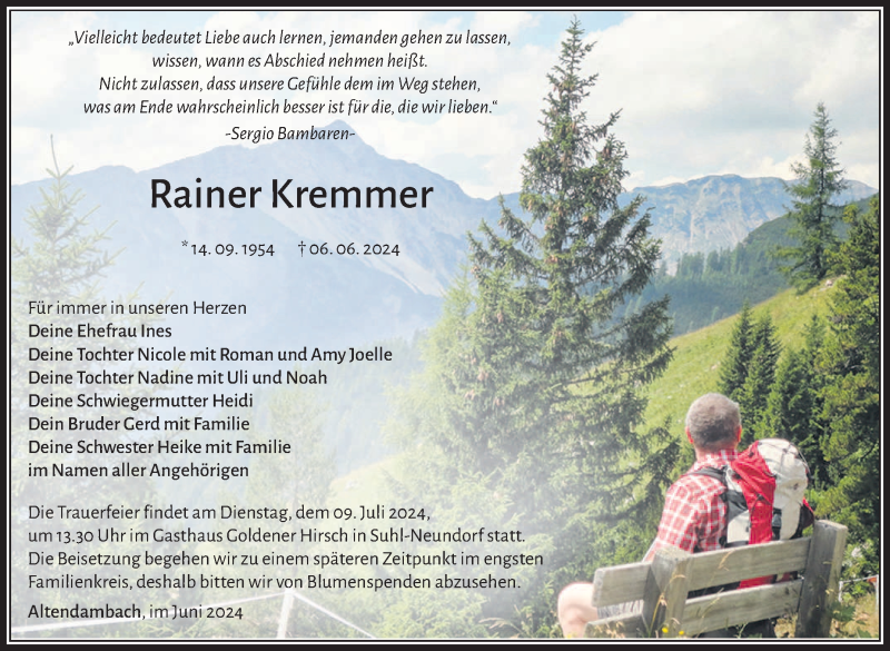 Hier finden Sie alle Traueranzeigen aus der Zeitung, die bisher für Rainer Kremmer erschienen sind. Weitere Traueranzeigen, die in der Zeitung erscheinen, werden hier ebenfalls aufgelistet