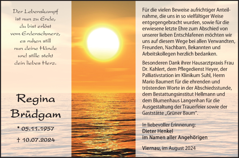Hier finden Sie alle Traueranzeigen aus der Zeitung, die bisher für Regina Brüdgam erschienen sind. Weitere Traueranzeigen, die in der Zeitung erscheinen, werden hier ebenfalls aufgelistet