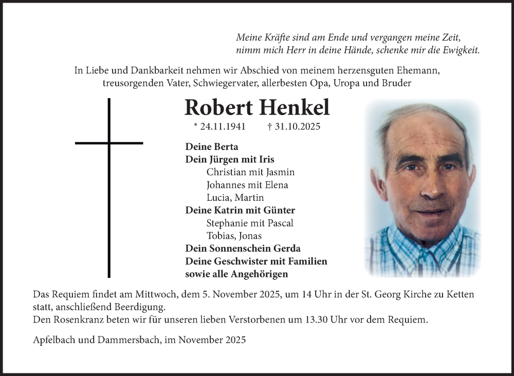Hier finden Sie alle Traueranzeigen aus der Zeitung, die bisher für Robert Henkel erschienen sind. Weitere Traueranzeigen, die in der Zeitung erscheinen, werden hier ebenfalls aufgelistet