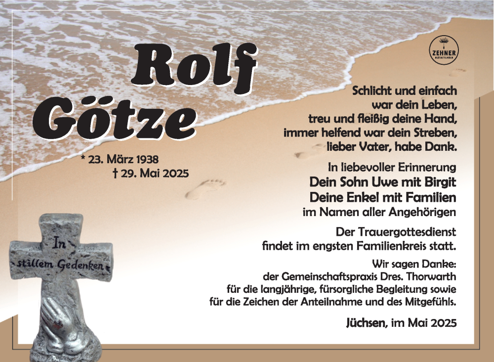 Hier finden Sie alle Traueranzeigen aus der Zeitung, die bisher für Rolf Götze erschienen sind. Weitere Traueranzeigen, die in der Zeitung erscheinen, werden hier ebenfalls aufgelistet