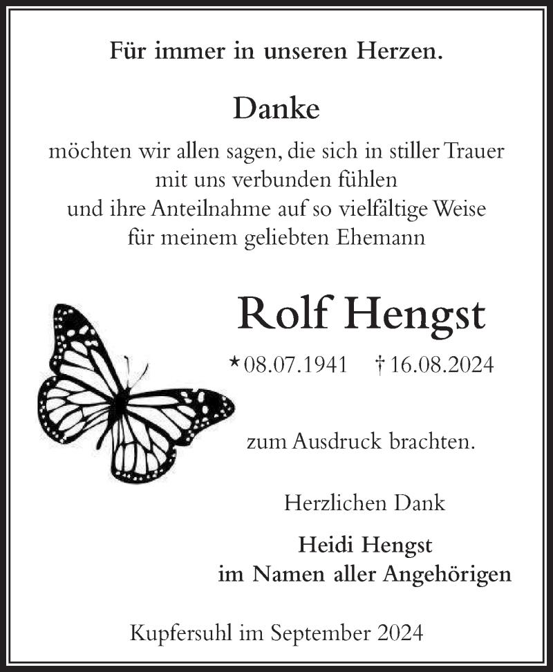 Hier finden Sie alle Traueranzeigen aus der Zeitung, die bisher für Rolf Hengst erschienen sind. Weitere Traueranzeigen, die in der Zeitung erscheinen, werden hier ebenfalls aufgelistet