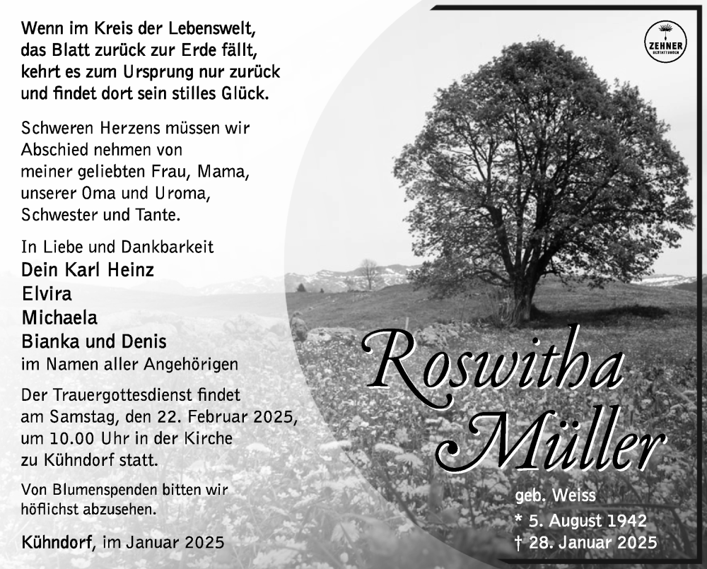 Hier finden Sie alle Traueranzeigen aus der Zeitung, die bisher für Roswitha Müller erschienen sind. Weitere Traueranzeigen, die in der Zeitung erscheinen, werden hier ebenfalls aufgelistet