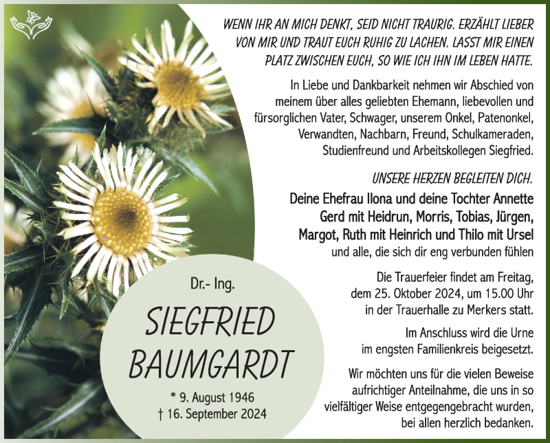 Hier finden Sie alle Traueranzeigen aus der Zeitung, die bisher für Siegfried Baumgardt erschienen sind. Weitere Traueranzeigen, die in der Zeitung erscheinen, werden hier ebenfalls aufgelistet