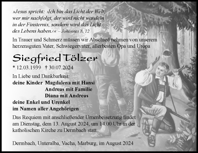 Hier finden Sie alle Traueranzeigen aus der Zeitung, die bisher für Siegfried Tölzer erschienen sind. Weitere Traueranzeigen, die in der Zeitung erscheinen, werden hier ebenfalls aufgelistet