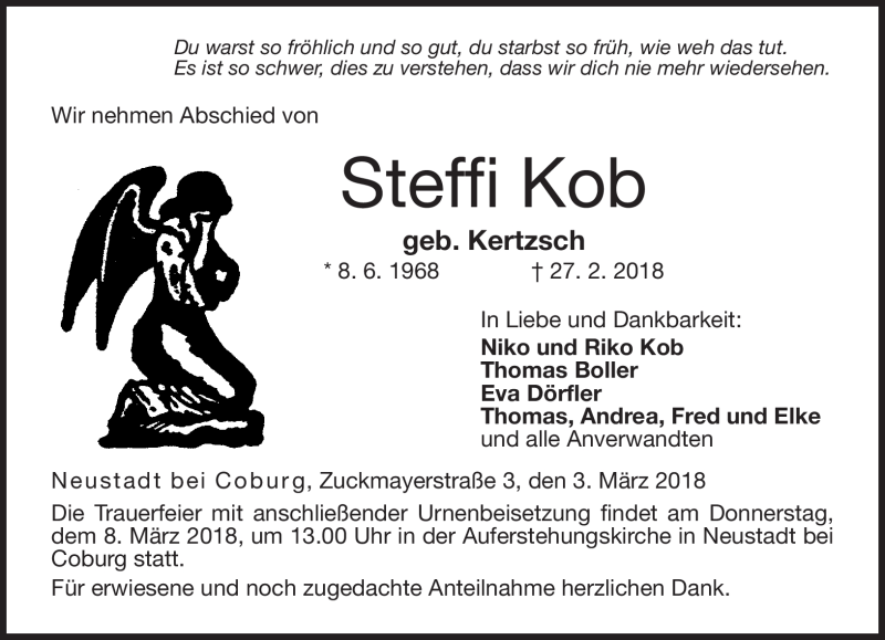 Hier finden Sie alle Traueranzeigen aus der Zeitung, die bisher für Steffi Kob erschienen sind. Weitere Traueranzeigen, die in der Zeitung erscheinen, werden hier ebenfalls aufgelistet