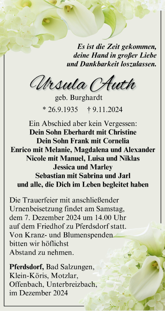 Hier finden Sie alle Traueranzeigen aus der Zeitung, die bisher für Ursula Auth erschienen sind. Weitere Traueranzeigen, die in der Zeitung erscheinen, werden hier ebenfalls aufgelistet