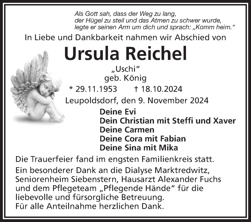 Hier finden Sie alle Traueranzeigen aus der Zeitung, die bisher für Ursula Reichel erschienen sind. Weitere Traueranzeigen, die in der Zeitung erscheinen, werden hier ebenfalls aufgelistet
