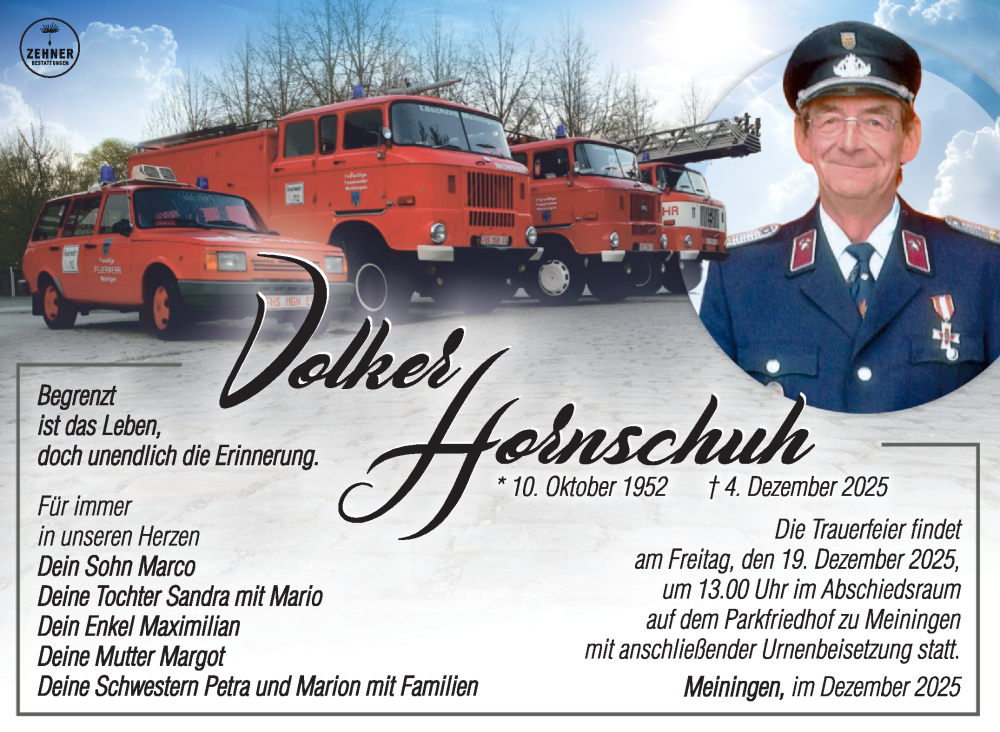 Hier finden Sie alle Traueranzeigen aus der Zeitung, die bisher für Volker Hornschuh erschienen sind. Weitere Traueranzeigen, die in der Zeitung erscheinen, werden hier ebenfalls aufgelistet