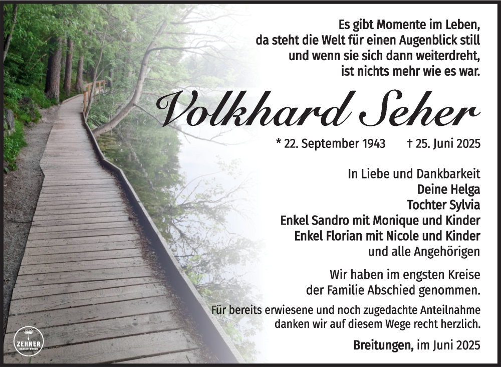 Hier finden Sie alle Traueranzeigen aus der Zeitung, die bisher für Volkhard Seher erschienen sind. Weitere Traueranzeigen, die in der Zeitung erscheinen, werden hier ebenfalls aufgelistet