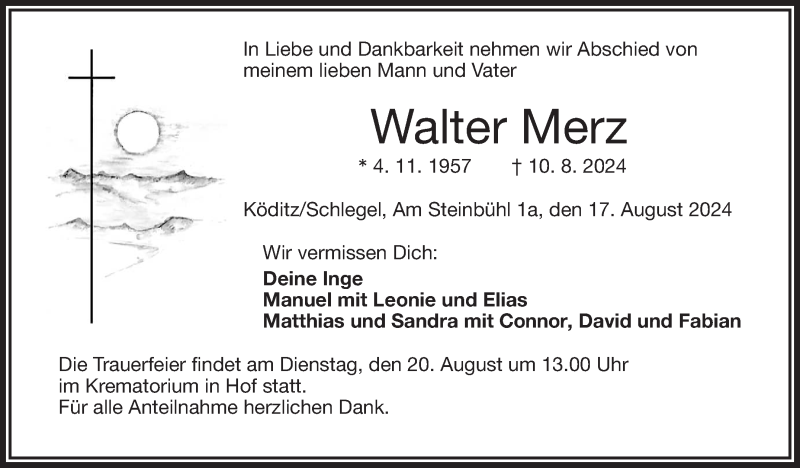 Hier finden Sie alle Traueranzeigen aus der Zeitung, die bisher für Walter Merz erschienen sind. Weitere Traueranzeigen, die in der Zeitung erscheinen, werden hier ebenfalls aufgelistet