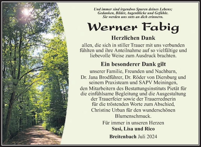 Hier finden Sie alle Traueranzeigen aus der Zeitung, die bisher für Werner Fabig erschienen sind. Weitere Traueranzeigen, die in der Zeitung erscheinen, werden hier ebenfalls aufgelistet