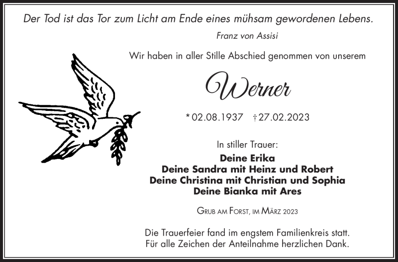 Hier finden Sie alle Traueranzeigen aus der Zeitung, die bisher für Werner Kretschmer erschienen sind. Weitere Traueranzeigen, die in der Zeitung erscheinen, werden hier ebenfalls aufgelistet