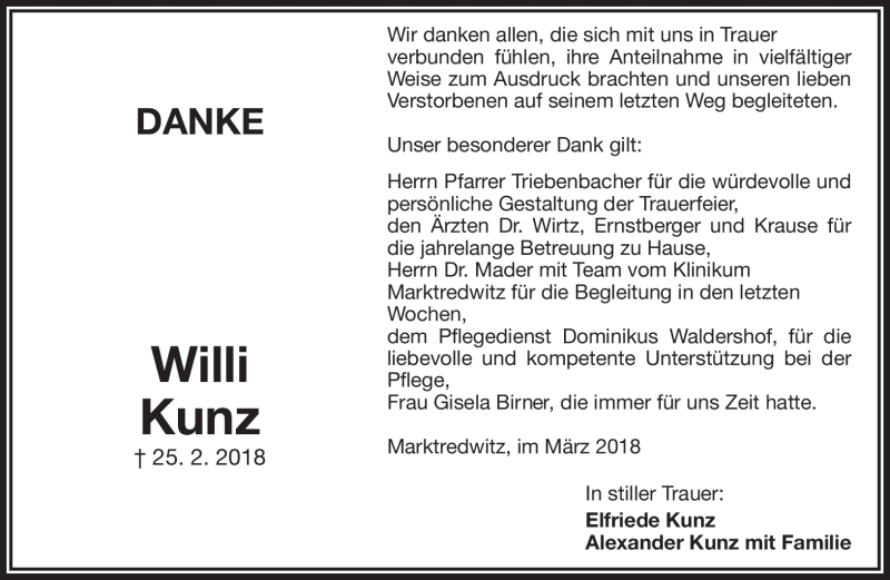 Hier finden Sie alle Traueranzeigen aus der Zeitung, die bisher für Willi Kunz erschienen sind. Weitere Traueranzeigen, die in der Zeitung erscheinen, werden hier ebenfalls aufgelistet