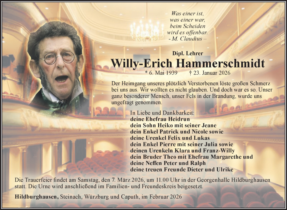 Hier finden Sie alle Traueranzeigen aus der Zeitung, die bisher für Willy-Erich Hammerschmidt erschienen sind. Weitere Traueranzeigen, die in der Zeitung erscheinen, werden hier ebenfalls aufgelistet