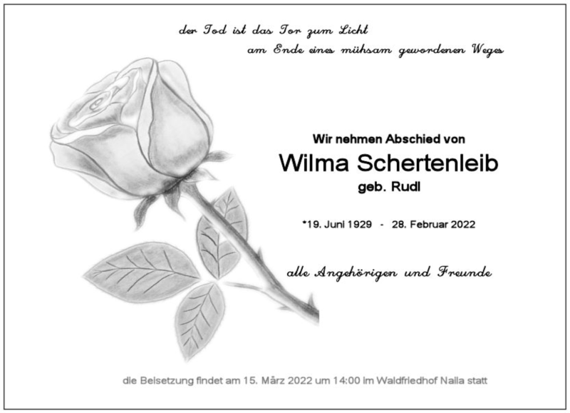 Hier finden Sie alle Traueranzeigen aus der Zeitung, die bisher für Wilma Schertenleib erschienen sind. Weitere Traueranzeigen, die in der Zeitung erscheinen, werden hier ebenfalls aufgelistet
