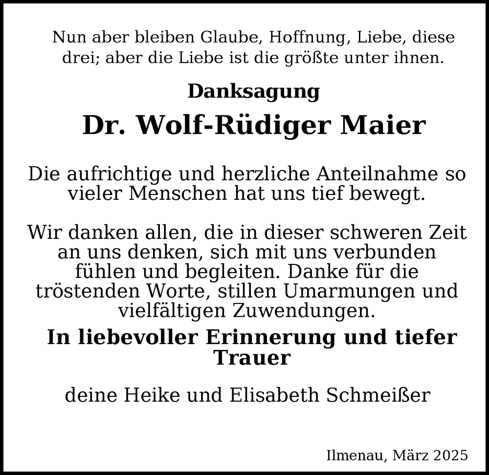 Hier finden Sie alle Traueranzeigen aus der Zeitung, die bisher für Wolf-Rüdiger Maier erschienen sind. Weitere Traueranzeigen, die in der Zeitung erscheinen, werden hier ebenfalls aufgelistet