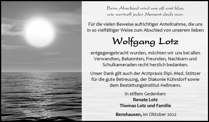 Hier finden Sie alle Traueranzeigen aus der Zeitung, die bisher für Wolfgang Lotz erschienen sind. Weitere Traueranzeigen, die in der Zeitung erscheinen, werden hier ebenfalls aufgelistet